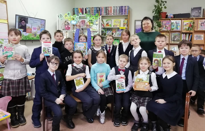 Юные читатели перенеслись в чудесный мир писателя по презентации «Кладовая природы Михаила Пришвина». Детишки совершили импровизированное путешествие в лес – прослушали рассказы «Ёж», «Ребята и утята», «Гости». Далее наступил соревновательный момент – школьники боролись за звание лучшего знатока рассказов М. Пришвина. Ребята активно отвечали на вопросы викторины, находили недостающие слова в названиях рассказов натуралиста, отгадывали загадки и вспоминали, в каких рассказах лесного волшебника встречаются отгадки. Представленная книжная выставка «В лес по загадки» привлекла знакомыми и ещё непрочитанными книгами.