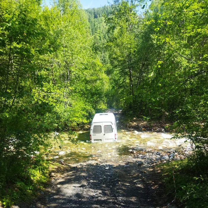 Набитая людьми «Газель» застряла на реке Слюдянке