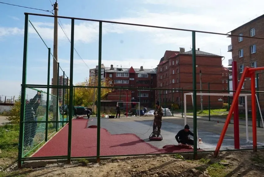 Многофункциональный корт заканчивают обустраивать на улице Розы Люксембург в Иркутске