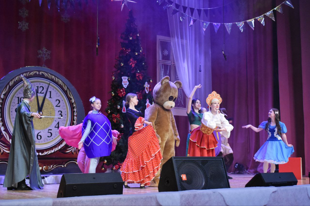Новогоднее настроение юным саянцам и их родителям дарят артисты Дворца культуры "Юность".