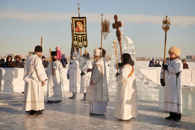 На территории залива уже приступили к подготовке площадки для строительства ледяных скульптур. Здесь планируют соорудить храм, крест, фигуры святых, ангелов и животных. Также готовят проруби для купания и забора воды. Работы выполняют прихожане Храма Александра Невского, волонтеры, сотрудники Театра народной драмы.