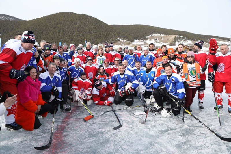 8 марта в поселке Большое Голоустное Иркутского района на льду озера Байкал прошел звездный хоккейный матч с участием Вячеслава Фетисова и других чемпионов и мастеров спорта.