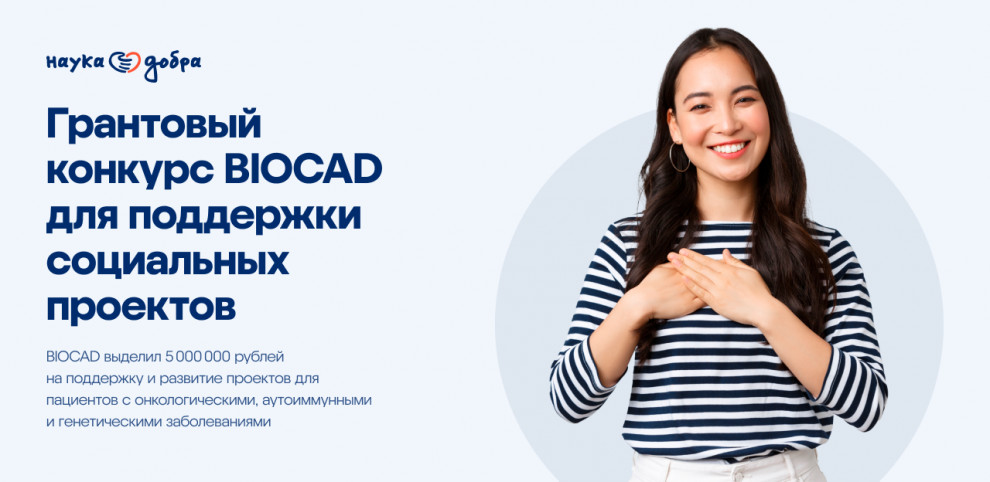 Некоммерческие организации, чьи социальные проекты направлены на повышение качества жизни пациентов, профилактику и раннюю диагностику онкологических, аутоиммунных и редких генетических заболеваний приглашают принять участие в конкурсе «Наука добра» . Грантовый фонд конкурса — пять миллионов рублей. Средства будут распределены между краткосрочными проектами, реализация которых может занять до шести месяцев, и долгосрочными, рассчитанными на срок до одного года. Максимальная сумма гранта для лауреата составит 1,5 миллиона рублей.