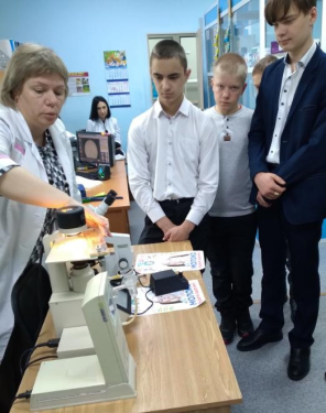 В отделении диагностики ребятам показали работу диагностической ветеринарной лаборатории, рассказали о целях и задачах лабораторной работы. Продемонстрировали методы проведения ветеринарно-санитарной экспертизы мяса и молока.