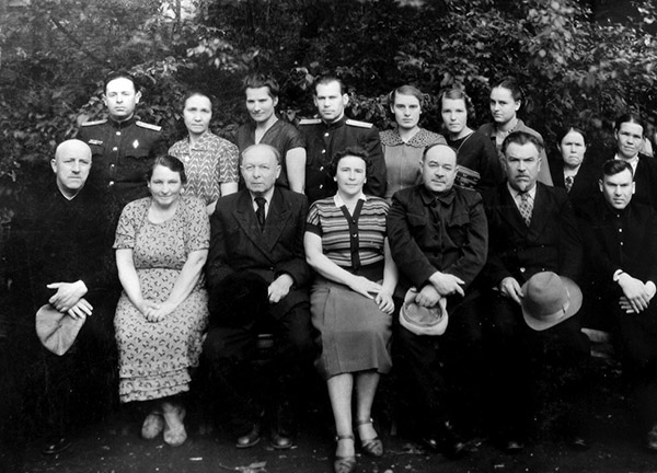 Коллектив ЛОР-кафедры и клиники ИГМИ в 50-е годы. Нижний ряд (слева направо): ассистент В.А. Филениус, А.И. Савельева, профессор И.М. Круковер, ассистент, к. м. н. И.П. Хмельчонок, доцент А.П. Мишарин, ассистент А.И. Дубовик. Верхний ряд: третья слева – ассистент, к. м. н. К.Г. Астахова, шестая слева – ассистент, к. м. н. Н.В. Антоневич (фото с сайта https://www.mediasphera.ru/issues/vestnik-otorinolaringologii/2015/3/490042-466820150320 );